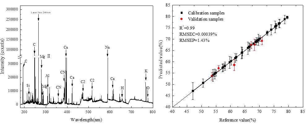 - The calibration strategies based on dominant factors combined with deviation correction method was proposed to realize the quantitative analysis of carbon and hydrogen in coal.
