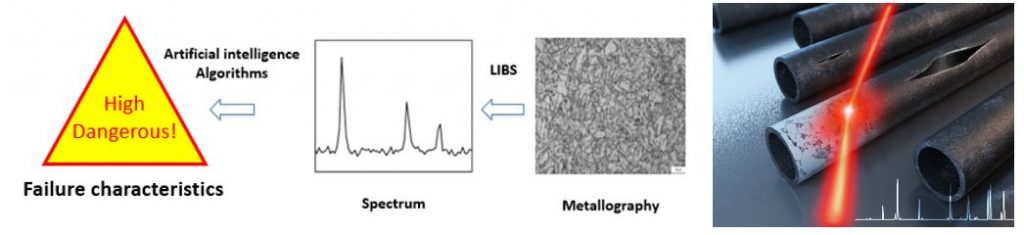 The failure of heat-resistant steel is a great safety and operation issue for power plant equipment. The traditional analysis method is time-consuming and requires tedious sample preparation and handling. LIBS was proposed to realize the failure prediction of heat transfer surfaces based on the matrix effects caused by the changes of microstructure and mechanical properties of boiler tube.